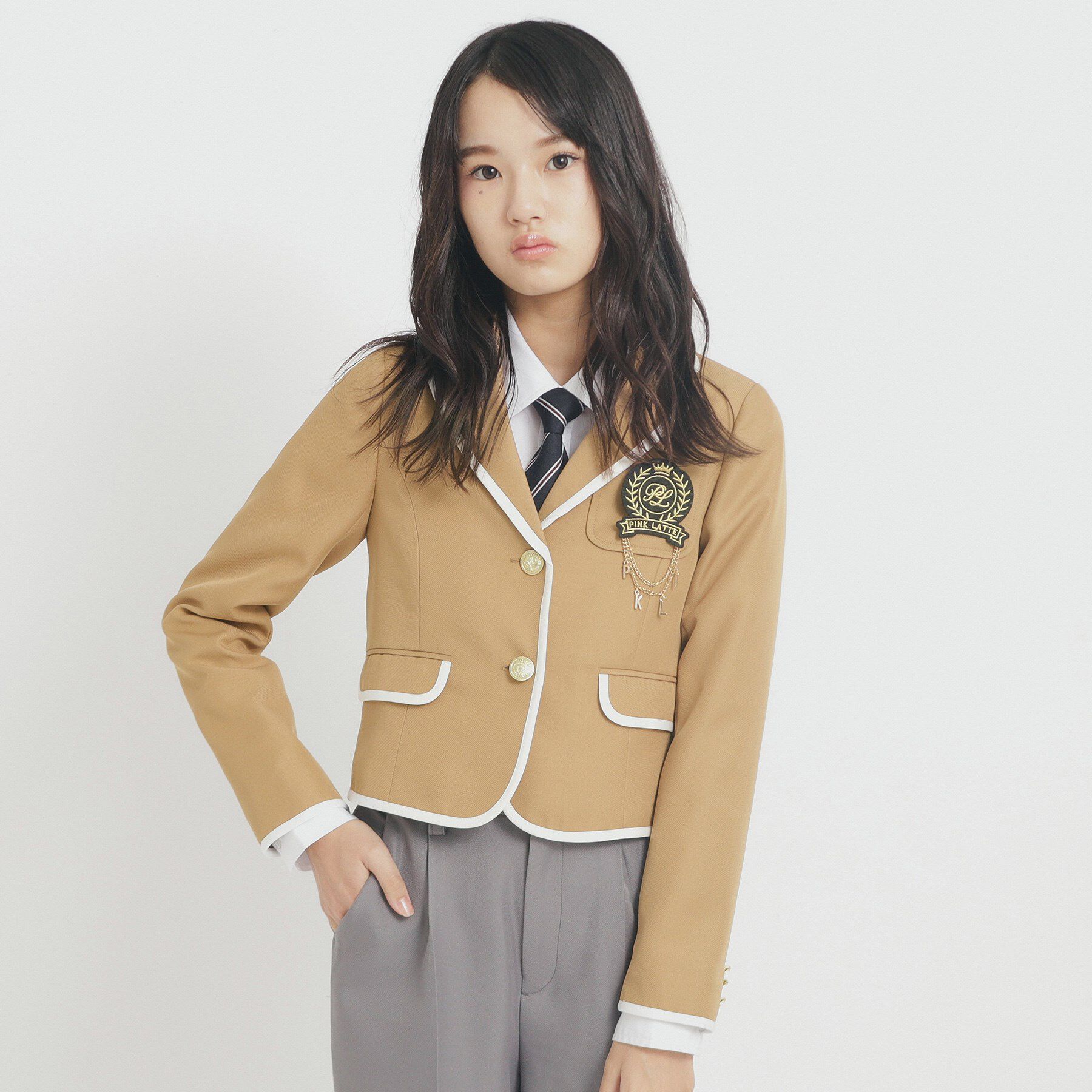 今季の新しい入卒アイテムです。組み合わせ自由【デザイン】配色のパイピングとゴールドカラーの3つボタンがポイントのテーラードジャケット。どなたでも着用.. |