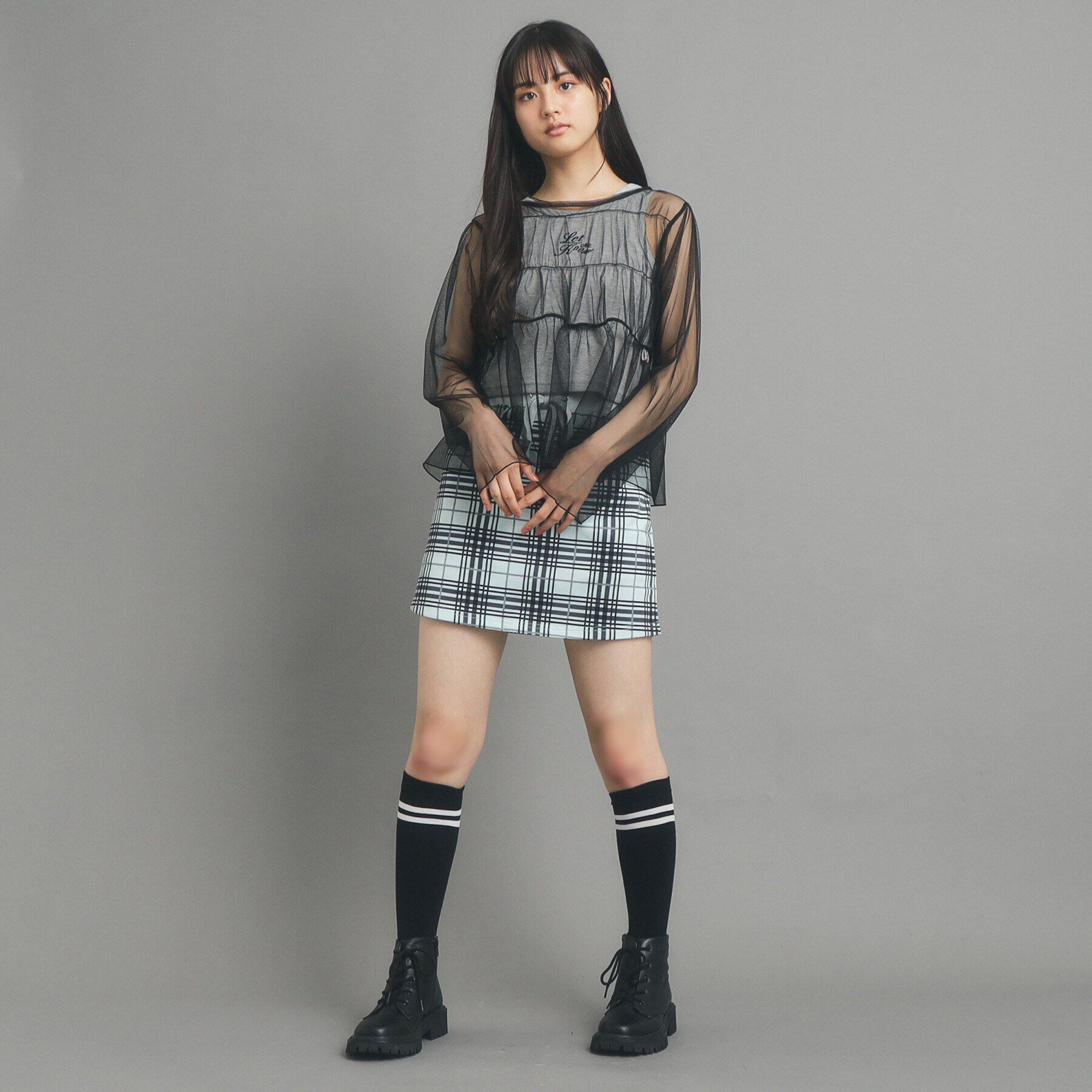 【素材】カーデ:透け感のあるチュール素材タンクトップ:サラッとした肌触りのコットン混素材です。【デザイン】トレンドのチュール素材を使用したかわいいカ.. |