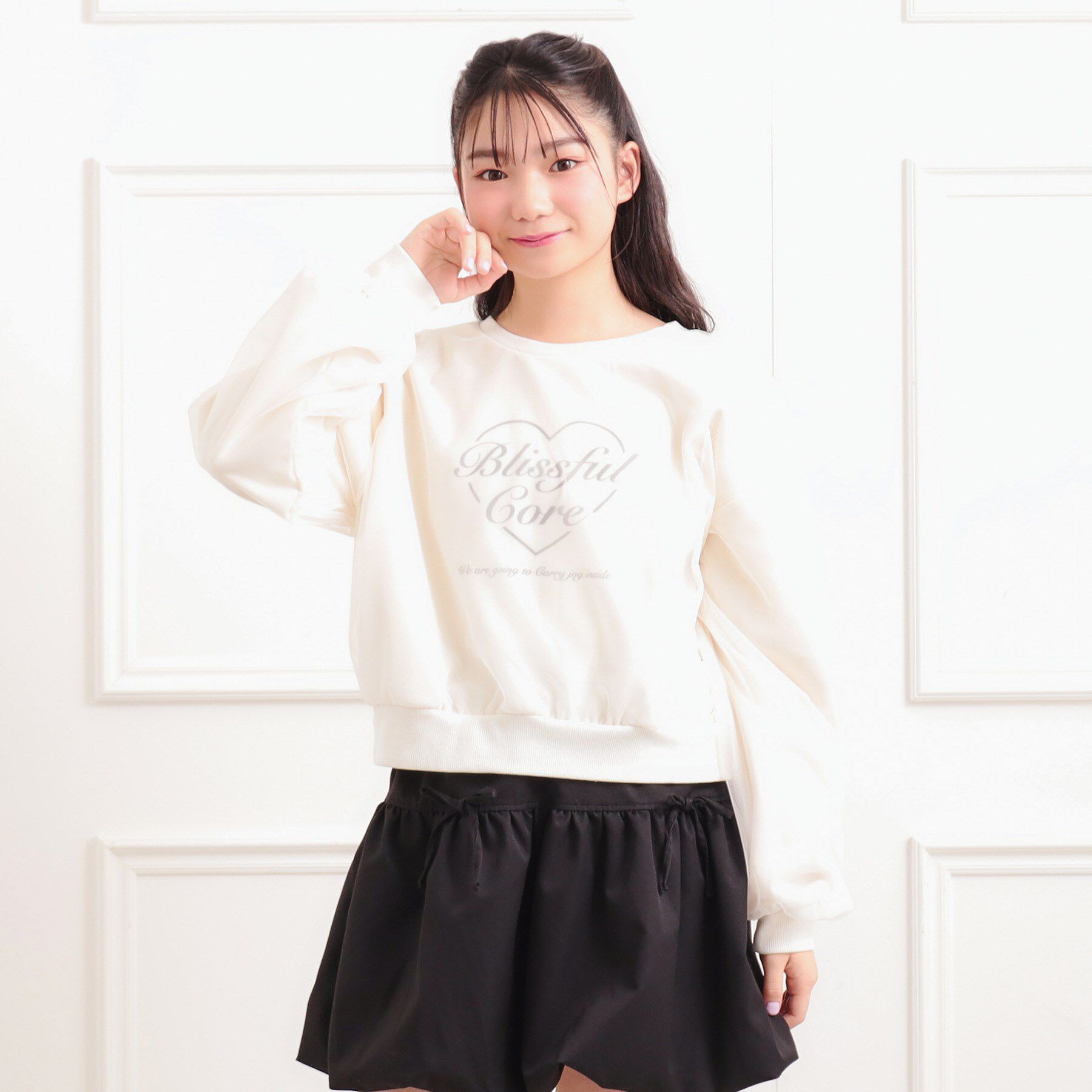 【デザイン】ハートにロゴが入ったプリントがガーリーで可愛い◎袖口と裾口はリブ付きでトレーナー型なのでカジュアルに使いやすく、春先まで使えるデザイン。.. |