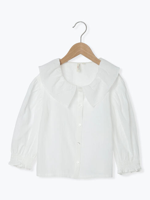 大きめのフリル襟がポイントになった、やさしい雰囲気のブラウス。ふんわりとした袖デザインで、動きやすさと可愛らしさを両立しました。デニムやレギンスを合.. |