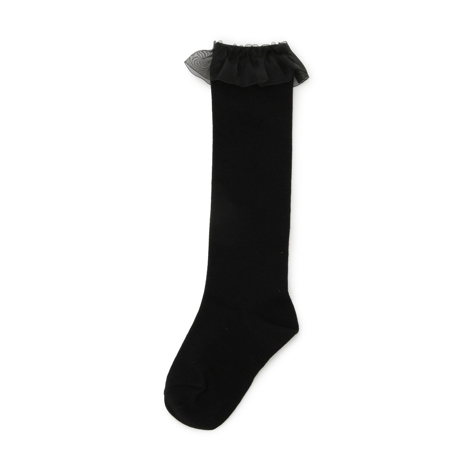 【デザイン】上品な雰囲気のオーガンジー素材のフリルを履き口に付けたデザインのハイソックス。セレモニースタイルに合わせたり、特別な日にオススメのハイソ.. |