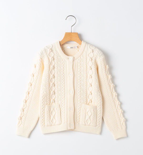 【シップス/SHIPS】 SHIPS KIDS:100〜130cm /〈洗濯機可能〉ケーブル ニット ポンポン カーディガン