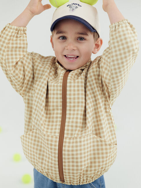 チェック柄のデザインがシーズンムードを演出するウィンドブレーカー。生地には撥水加工を施しているので、急な天候変化にも対応します。通気性に優れた内側の.. |