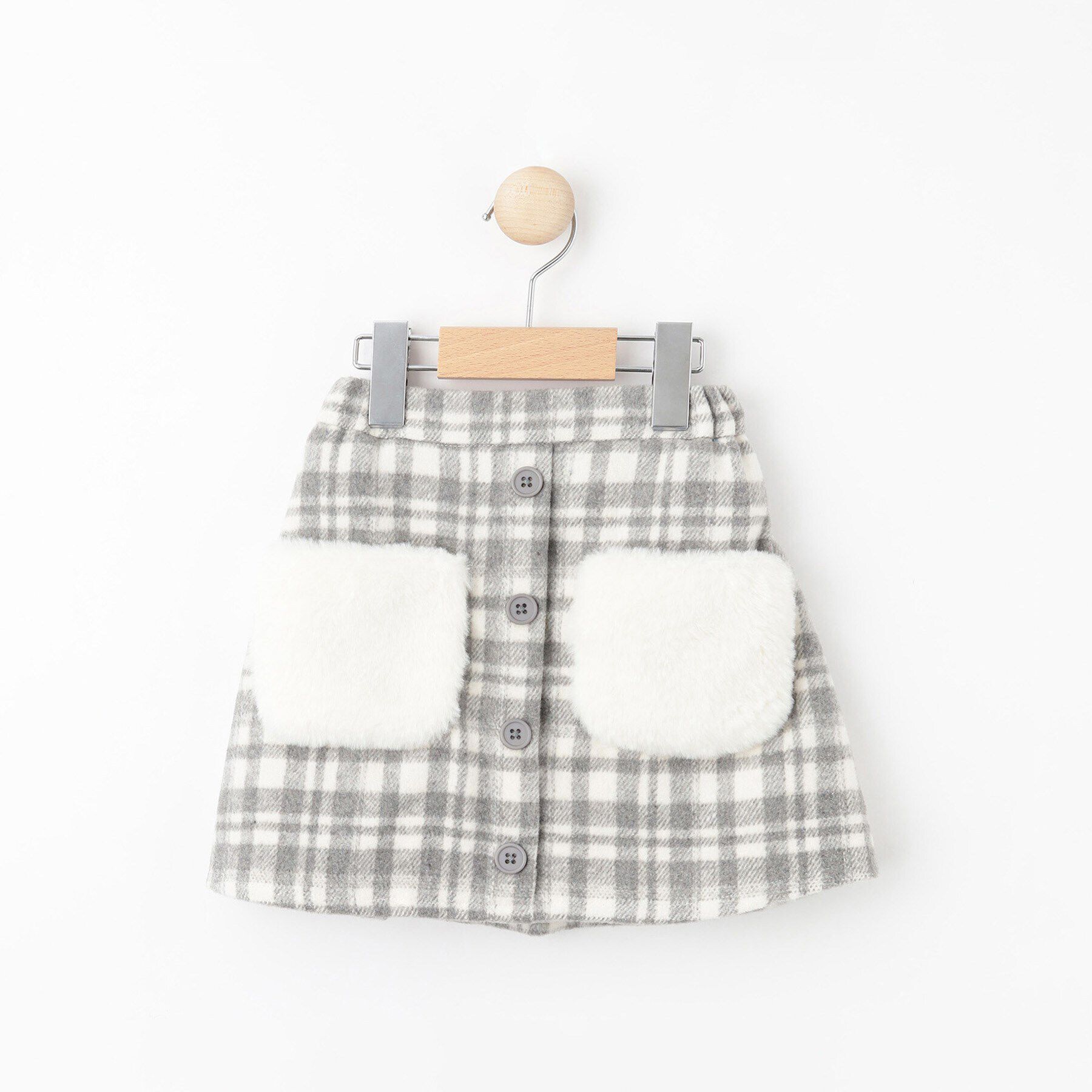 【シューラルー/SHOO・LA・RUE】 【110-140cm】ファーポケットチェック台形スカート
