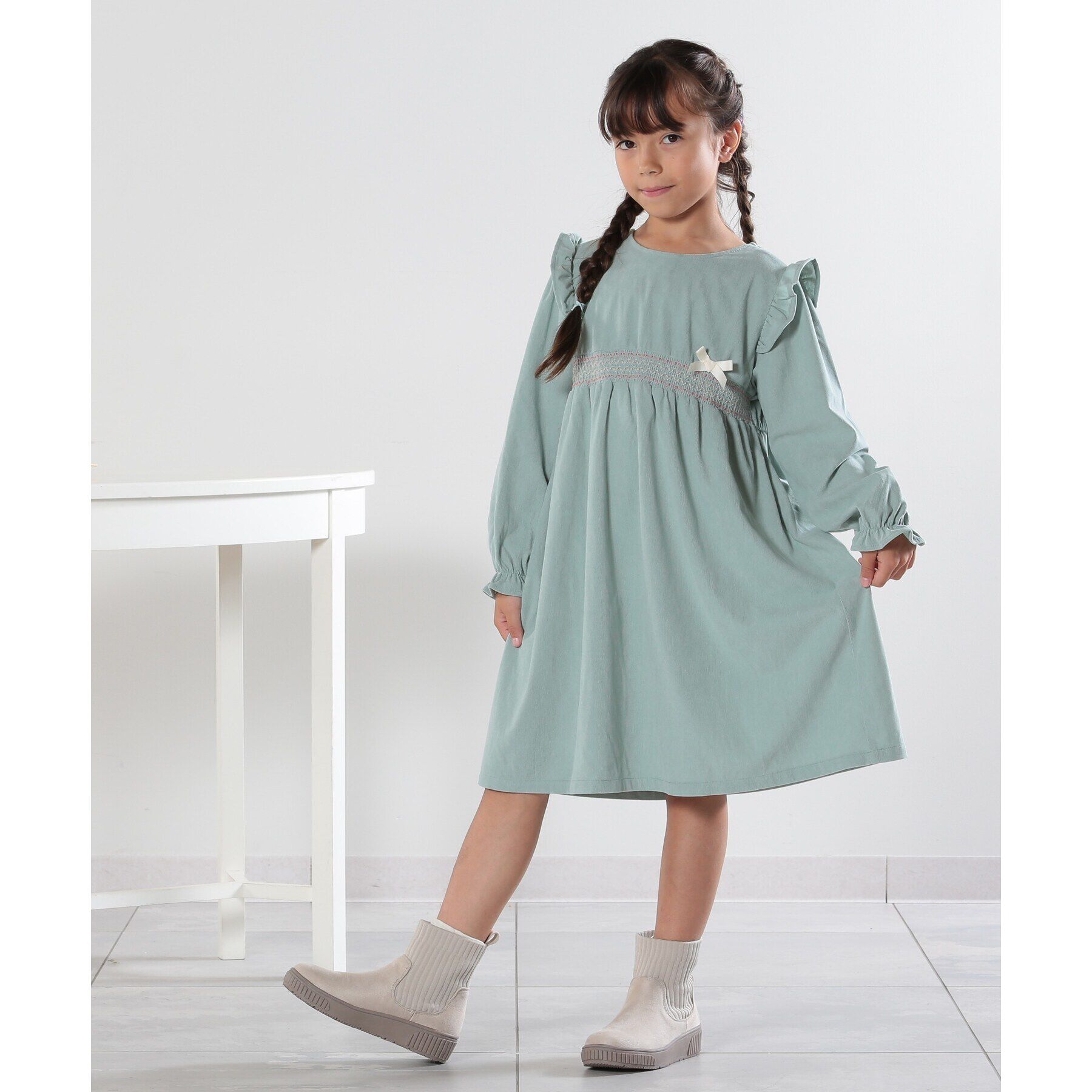 【シューラルー/SHOO・LA・RUE】 【110-140cm】ミニコーデュロイスモッキングワンピース