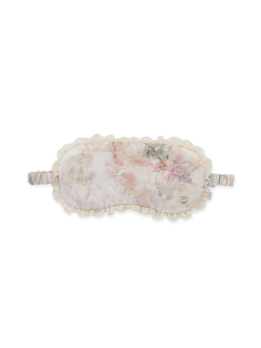 レースフリル付きのサテンジャガードアイマスク【Design/Styling】花や蝶を描いた春らしいサテンジャガード生地に、ドット柄など3種類のプリント柄を施したフ.. |