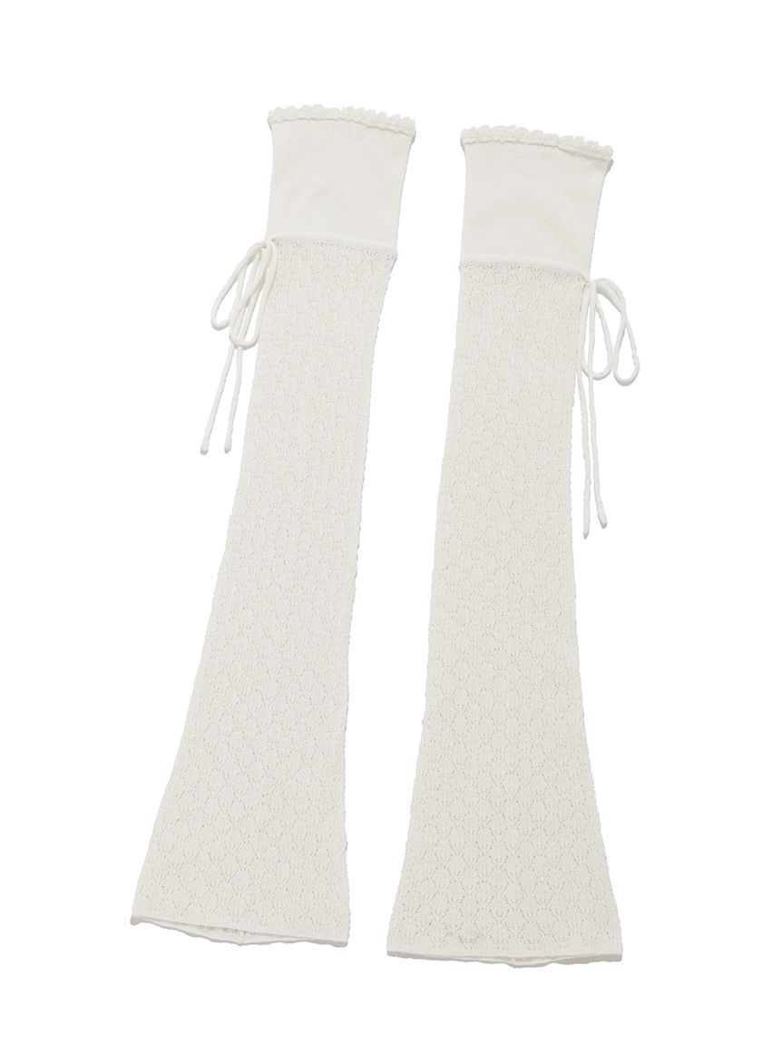 リボンが揺れるクロシェニットのレッグウォーマー【Design/Styling】春の温かな日差しに似合う、クロシェ編みニットのシリーズです。編み地の切り替えでニット.. |
