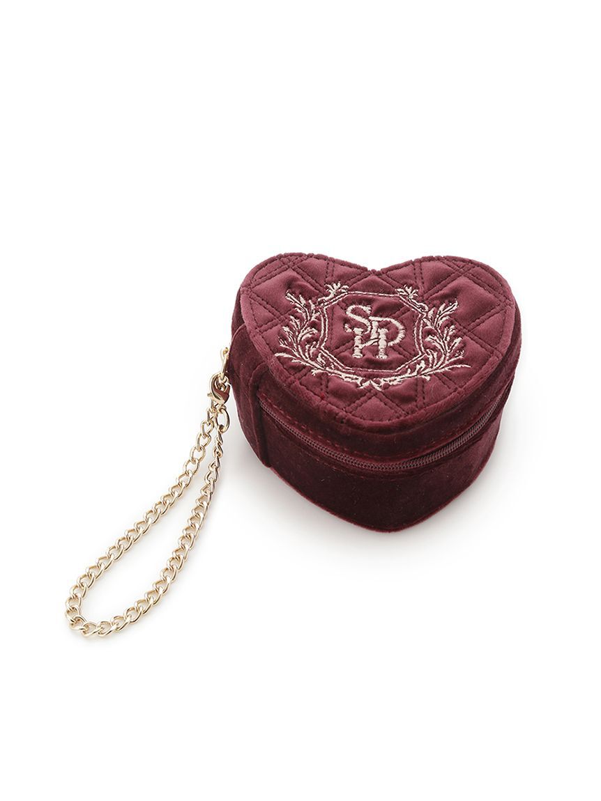 小さなハート型のベロアアクセサリーポーチ【Design/Styling】マットな艶感と季節感のあるカラーリングが目を引く、キルティング風のベロアポーチシリーズです.. |