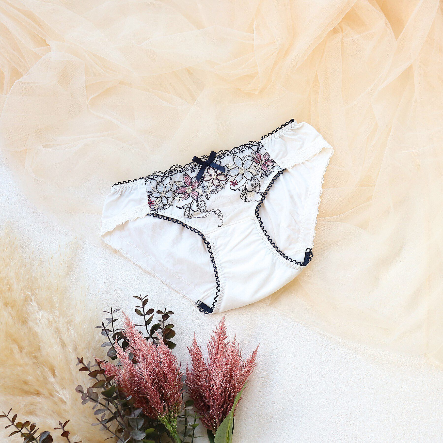 【お花を身につけて、何気ない日常をHappyに】たくさんの小花をフロント部分に散りばめた「メルティ」シリーズ。パッカー手法を用いた特殊なレースを使用し、.. |
