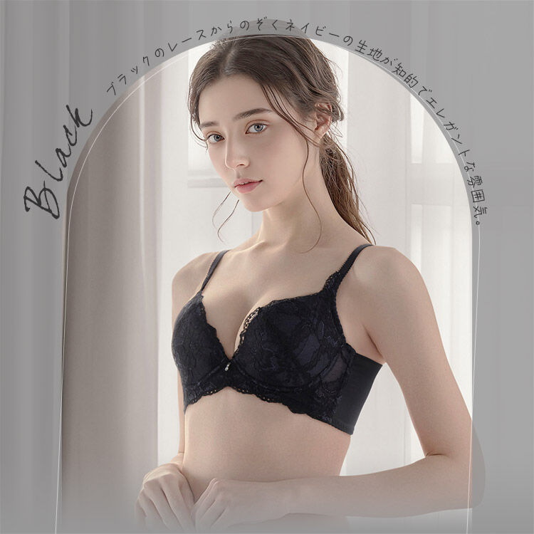 Bra カップ表は透け感が綺麗な軽いタッチのレース。ダーツも中心側によせてアウターにも響きづらいデザイン。 カップ裏はストレッチ性の高いウレタンカップ.. |