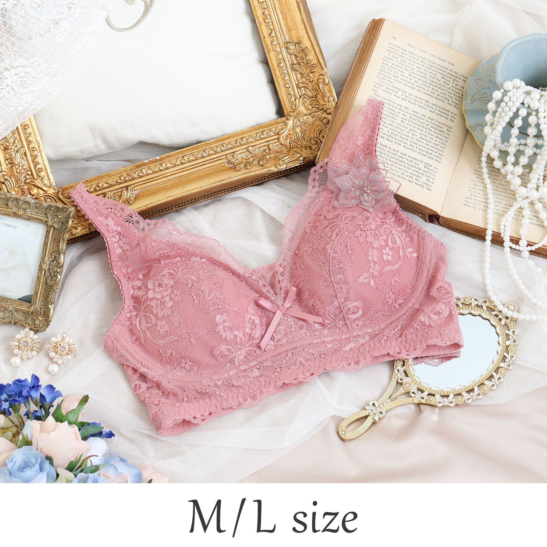 【レースで紡ぐ愛の言葉】優雅なアンティークの世界から生み出された、愛の言葉が散りばめられたシリーズです。おやすみブラはカップ全体を上品なレースで覆い.. |