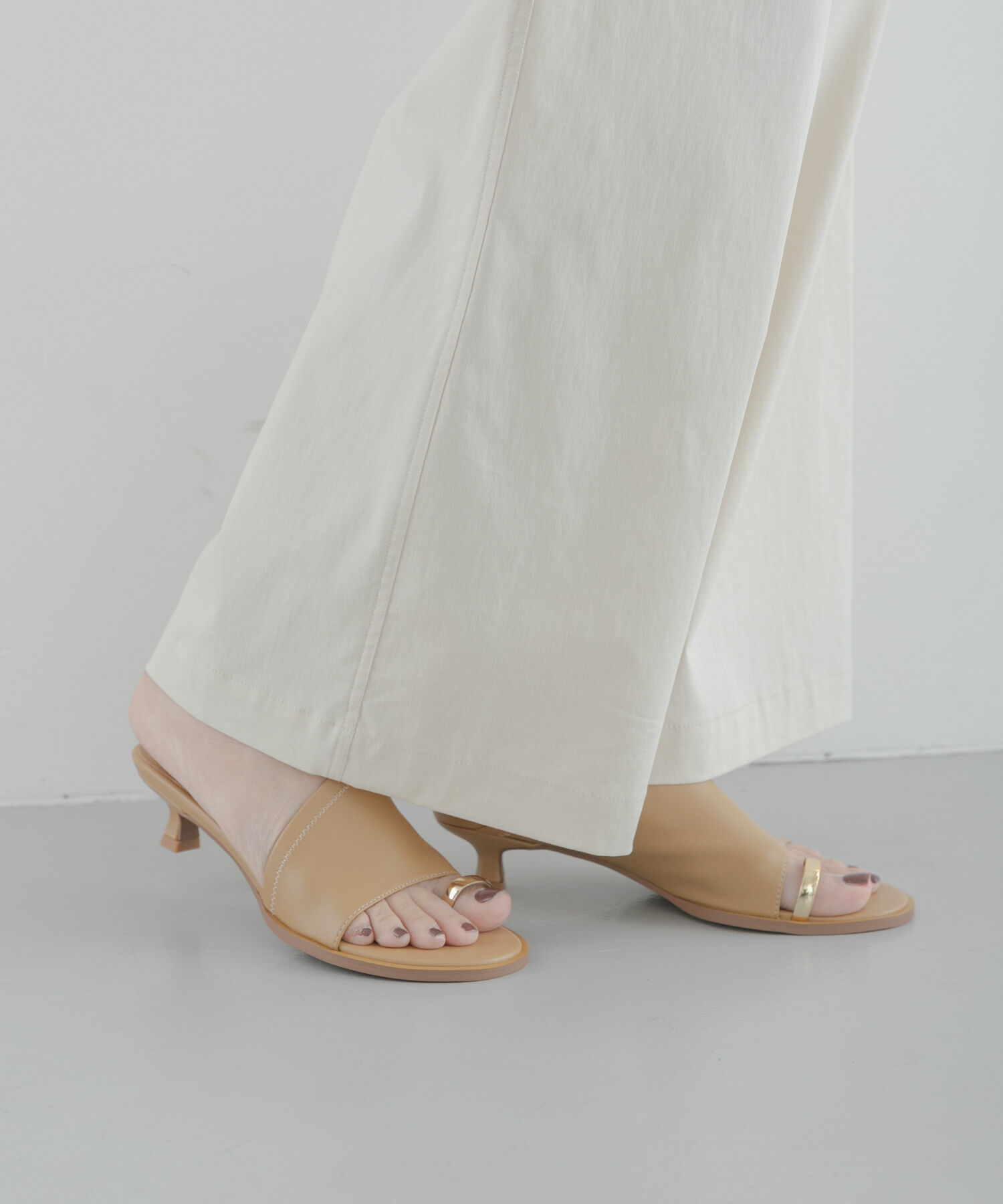 トゥリングのディテールが目を引くミュールサンダル。アクセサリーをつけているかのように見えるデザインは、カジュアルになりがちな夏の足元を華やかに演出し.. |