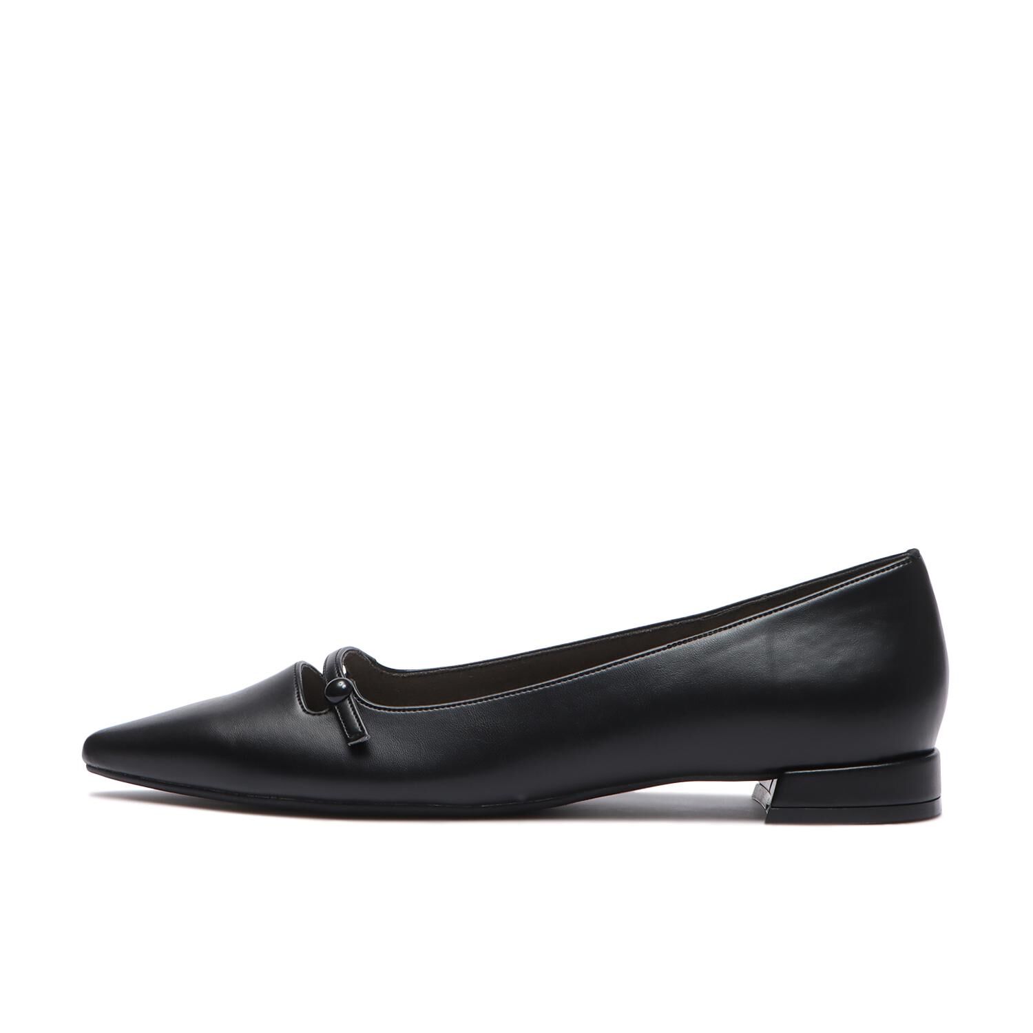 貼き心地に定評のあるポインテッド木型に、細ストラップでアクセントを付けました。まるいボタンが上品な足元を演出してくれます。ヒールはほんのりカップヒー.. |