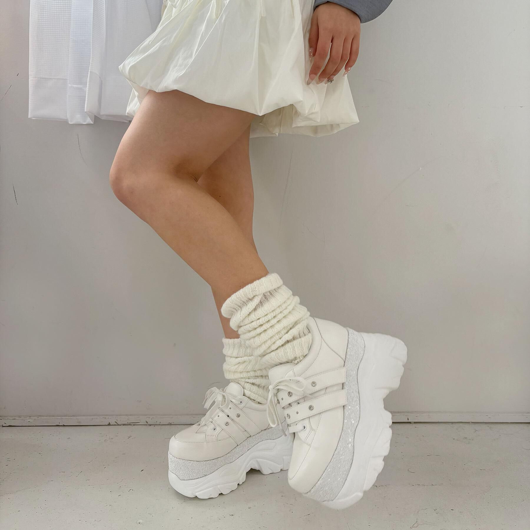 遊び心があふれるミックスレースデザインの厚底スニーカー。シンプルなアッパーに異素材のシューレースを組み合わせることで、こなれた足元を演出してくれます.. |