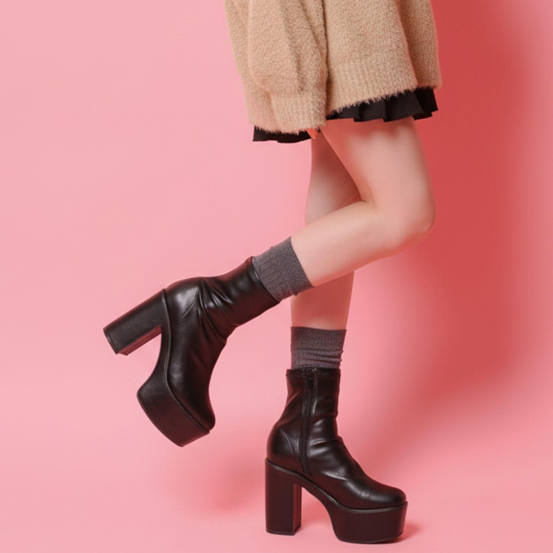 厚底だけど前の厚みもあるので足の負担少なく美脚効果も期待できますサイドジップなので脱ぎ履きもしやすいです素材もストレッチなので足のラインもきれいに演.. |