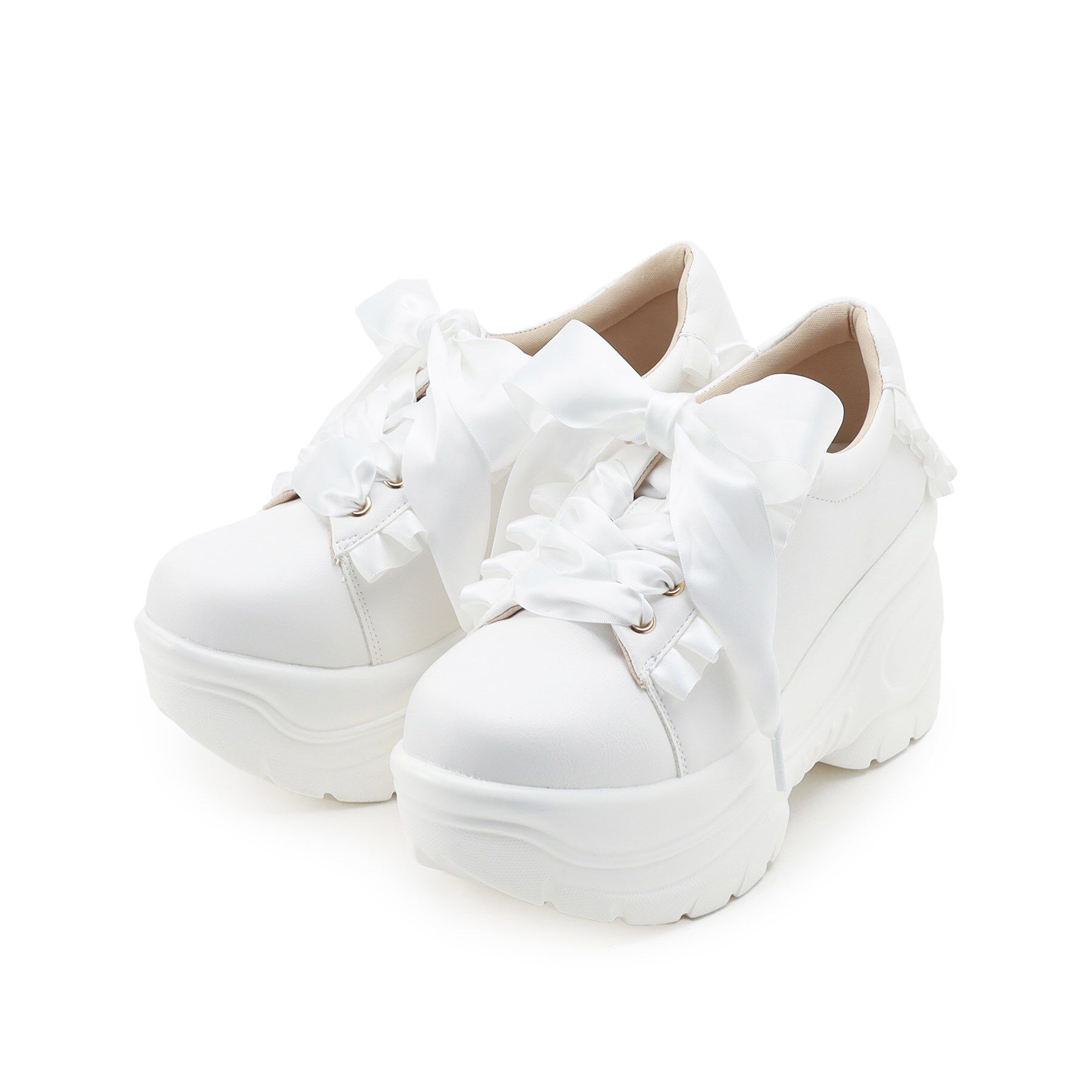ボリューム感のあるサテンリボンと、かかととサイドのフリルデザインがかわいい厚底スニーカーです。思いっきりガーリーテイストにしても、カジュアルmixにし.. |