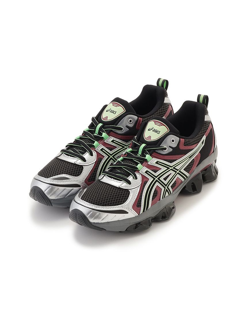 Y2Kのテクニカルな雰囲気が魅力のランニングシューズ「GEL-QUANTUM KINETIC」。ブラックメッシュを基調に、ボルドーとシルバーを組み合わせ、アシックスストラ.. |