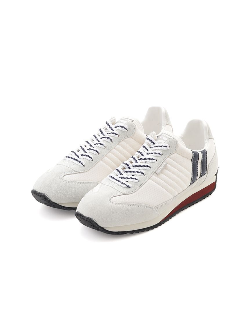優れたクッション性で普段使いにも最適で、オールシーズン履きまわせるスニーカー「MARATHON」。アイボリーをベースにグレーのベロアと2本ラインで彩ったデザ.. |