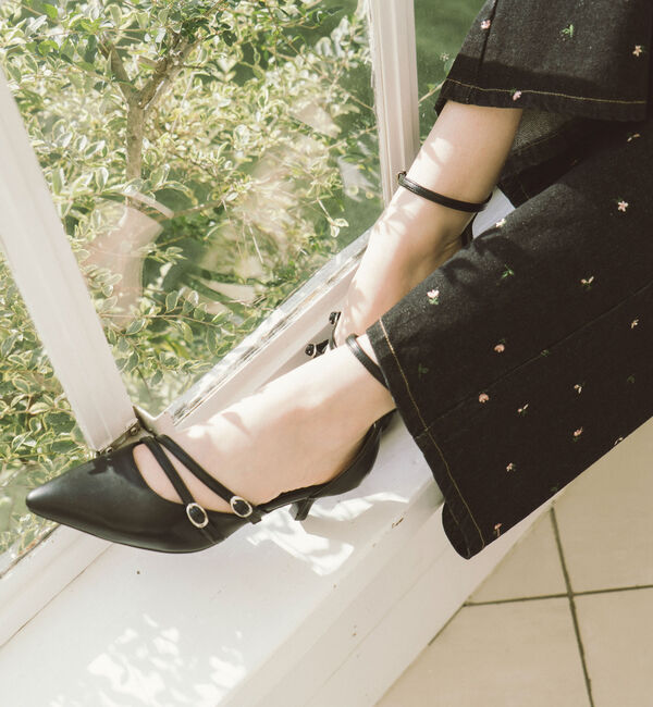 【allureville 2025 spring&summer】長めのノーズでフェミニンになり過ぎないよう、エッジィさを残したポインテッドトゥのバックストラップパンプス。.. |