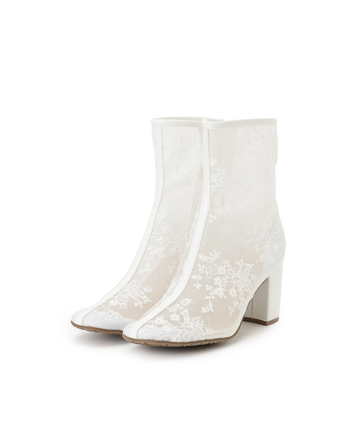 春夏シーズンに活躍するシアーショートブーツ【Design/Styling】・抜け感を演出するシアー生地を使用したショートブーツ。・素足のまま以外にも、チュールソッ.. |