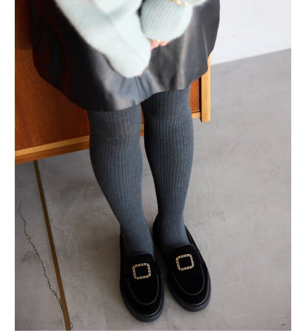 アンティークゴールドのチェーンバックルがフロントに効いた厚底ローファー。毛足が短めのベルベットとすっきりした木型のローファーベースで、厚底でもすっき.. |