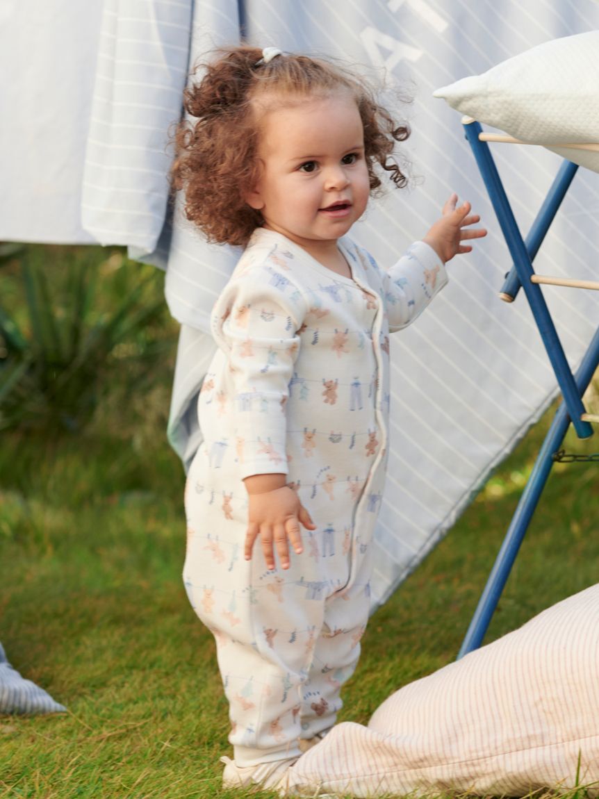 こちらの商品は衛生上の観点から返品・交換不可となります。【お洗濯されたぬいぐるみプリントのBABY 2WAYオール】【Fabric】適度な厚みと柔らかさのあるエイ.. |