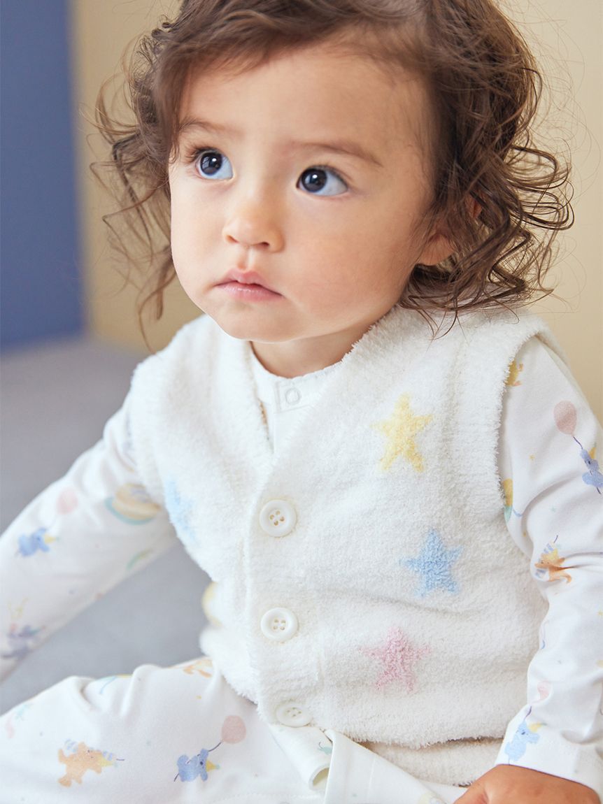 こちらの商品は衛生上の観点から返品・交換不可となります。【ギフトにもおすすめのスター柄BABYベスト】【Fabric】AIRY MOCO(エアリーモコ)…まるで空気を含.. |