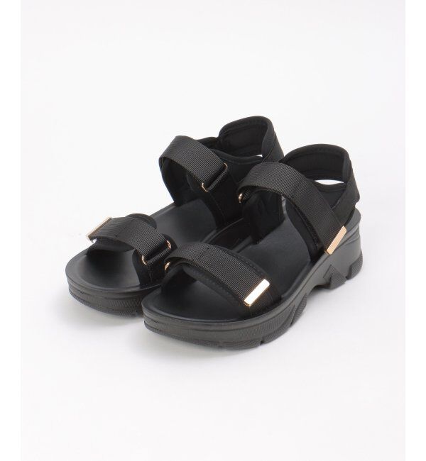 ダブルベルトデザインにゴールドカラーのパーツを効かせた、上質感のあるベルクロサンダル。厚底ながら屈曲性のあるソールで、足の動きにフィットし歩きやすさ.. |