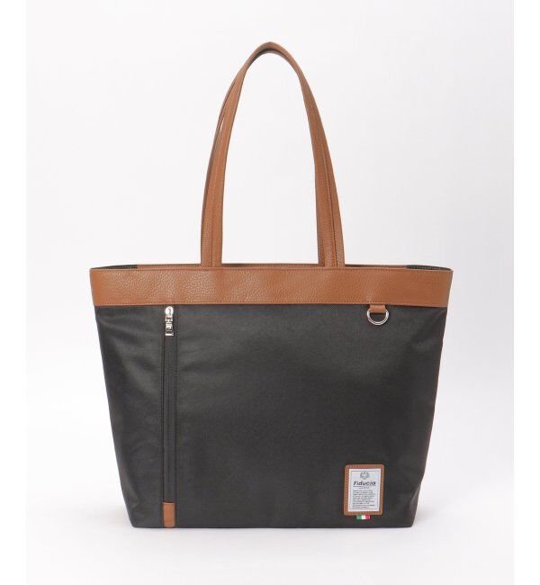 ポリエステルとレザータッチ素材を組み合わせた配色切り替えが、落ち着いた大人の品格を感じさせるトートバッグ。フロントには小物を整理しやすいポケットを備.. |