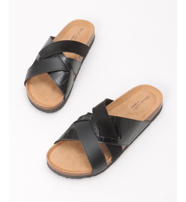 クロコ型押し、スエードタッチ、PUレザーを組み合わせた切り替えデザインのサンダル。クロスしたベルトは足元をしっかりホールドし、足裏に合わせた立体的な凹.. |