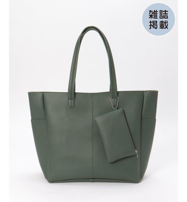 【雑誌 MonoMax(宝島社)5月号掲載】シュリンクタッチのPUレザーを使用した、高級感のあるトートバッグ。同素材のポーチが付き、カギ類などを収納しておく際に.. |