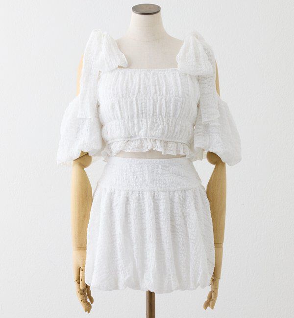 【ワンアフターアナザー ナイスクラップ/one after another NICE CLAUP】 swimwear/シャーリングオフショル-バルーンミニスカート(3点セット)