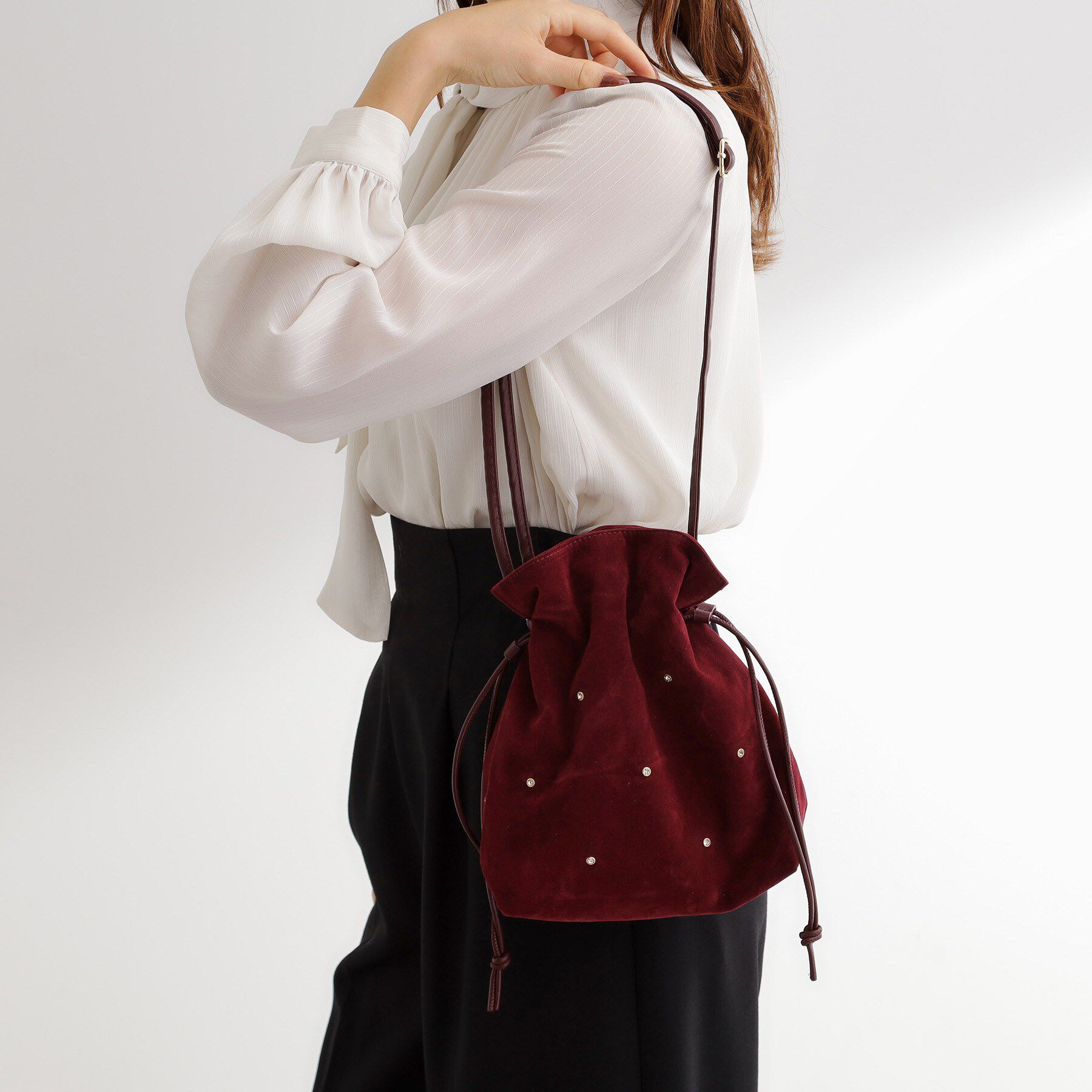 【グローブ/grove】 スタッズスエード調巾着ショルダー
