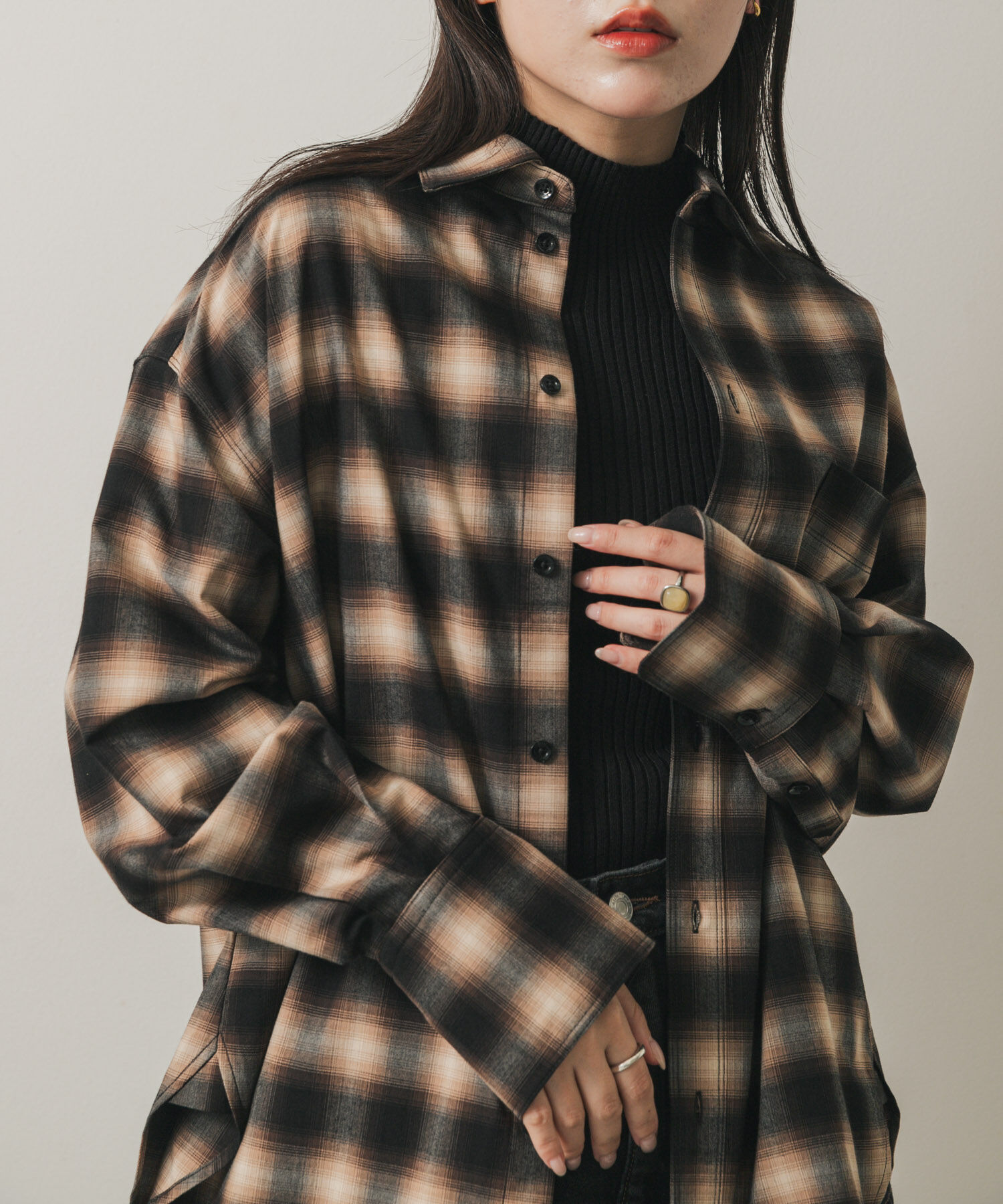 【着るだけでトレンド感アップ。オンブレチェックシャツ。】・トレンドのオンブレチェック柄・きれいめな素材で、カジュアルすぎない印象に・ゆったりとしたシルエットで、こなれ感を演出トレンドのオンブレチェック柄シャツ。シックな色合いと、きれいめな素材感が、カジュアルになりすぎず洗練された雰囲気を演出します。程よくゆとりのあるシルエットなので、一枚でさらっと着るのはもちろん、羽織りとしても活躍。タートルネックやTシャツとレイヤードして、様々な着こなしが楽しめます。デニムでカジュアルダウンしたり、きれいめなパンツやスカートと合わせれば、大人なスタイルが完成。秋冬のコーディネートを彩る、着回し力抜群のアイテムです。【2025 Autumn/Winter】【25AW】※商品画像は、光の当たり具合やパソコンなどの閲覧環境により、実際の色味と異なって見える場合がございます。予めご了承ください。※商品の色味の目安は、商品単体の画像をご参照ください。▼お気に入り登録のおすすめ▼お気に入り登録された商品は、マイページにて現在の価格情報や在庫状況の確認が可能です。お買い物リストの管理にぜひご利用ください。素材感透け感 : なし伸縮性 : ややあり裏地 : なし光沢 : なしポケット : あり センスオブプレイス バイ アーバンリサーチ/SENSE OF PLACE by URBAN RESEARCH SENSE OF PLACE by URBAN RESEARCH|トップス|シャツ・ブラウス