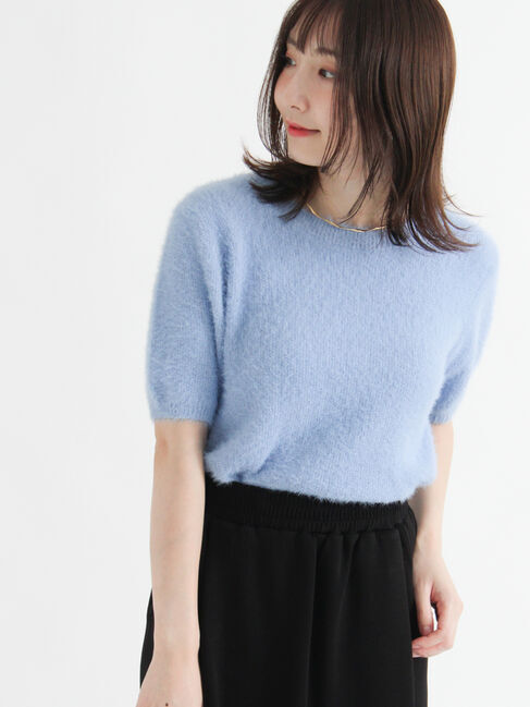 キラキラ輝くラメとシャギーのふんわり感が大人の可愛らしさを演出するハーフスリーブニット。柔らかく肌触りの良いシャギーニットで仕立てられているのも魅力的なポイント。普段使いにはもちろん仕事やデートなどの様々なシーンにも活躍してくれる1枚です。※商品画像は、撮影環境やお客様のご利用のPC・スマートフォンのモニター環境などにより実物と色味に差異がある場合がございます。 テチチ/Te chichi Te chichi TERRASSE|トップス|ニット・セーター