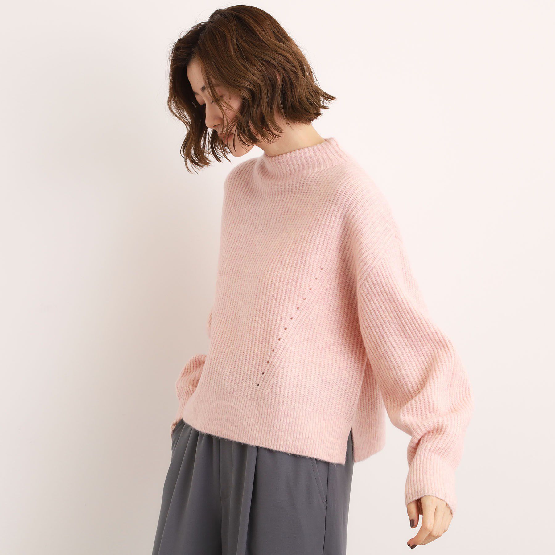 【グローブ/grove】 【洗える】ふんわりウール混ボトルネックニット