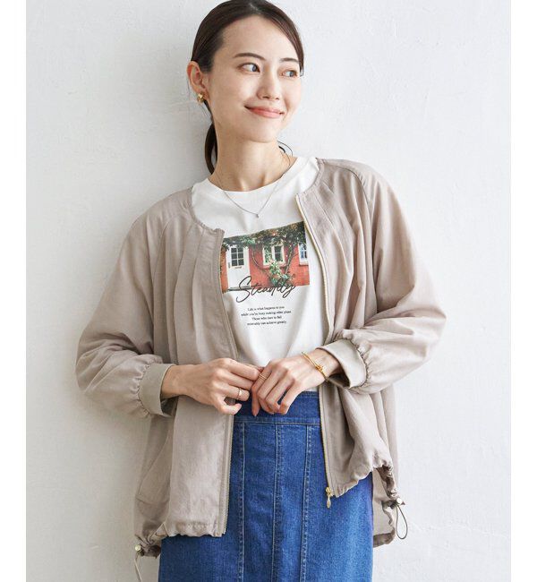 【雑誌InRed web(宝島社)10月号掲載】少し肌寒い日に便利なライトブルゾン。フロントのタックや裾のドロストなど、トレンドのディテールを取り入れました。端境期のうすかるアウターはこれ一択!【素材】きれいめな光沢とシアー感のあるライトな素材を使用。【デザイン】ノーカラーで胸元にはタックが入っていて、ファスナーを開けても閉めても奥行き感のあるデザインに仕上げました。ベーシックなチャコール・ベージュの2色展開だからどんなトップスインナーにも合わせやすいです。袖口にリブを使用しているからタックアップしやすく、裾はドロスト仕様で調節可能。【ikkaポイント】薄手で軽く、適度な透け感がフェミニンで、端境期の羽織としてぴったりなアイテムです。ファスナーと裾のストッパーのゴールドカラーがアクセントになっています。【おすすめコーディネート】Tシャツやデニムなどカジュアルなコーディネートにはもちろん、きれいめコーデにも馴染んでくれます。 [洗濯方法]洗濯の際はネットを使用してください[洗濯表示]手洗い可、ドライクリーニング可(F)、ウェットクリーニング(W) イッカ/ikka ikka|アウター|ブルゾン・スタジャン