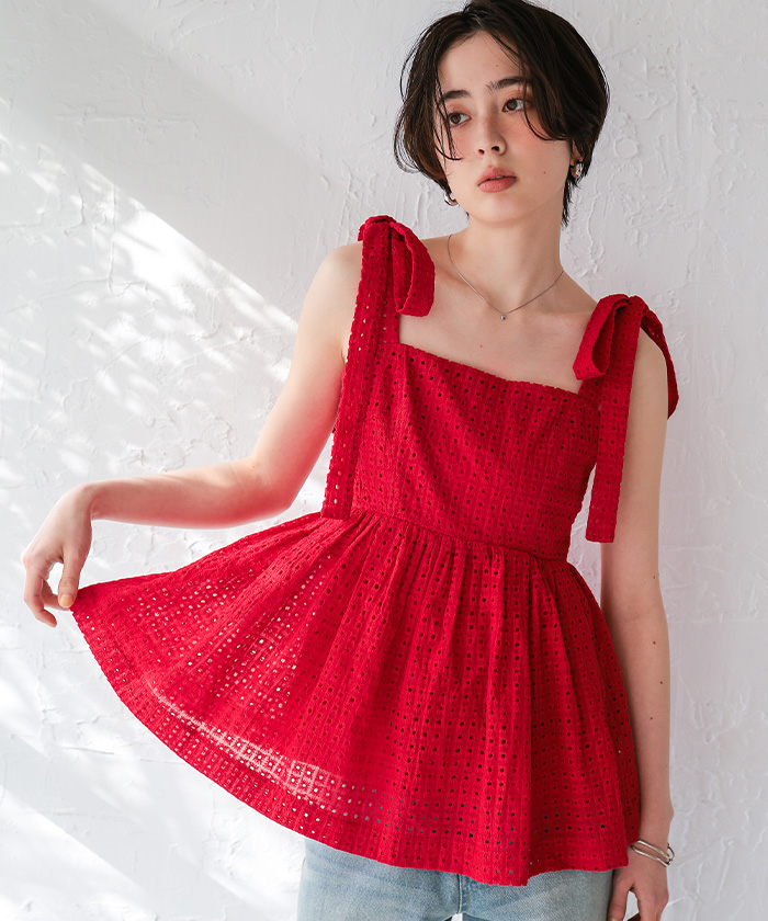 コットンレースペプラムリボントップス