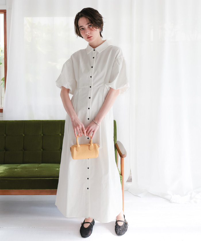パフスリーブシャツワンピース