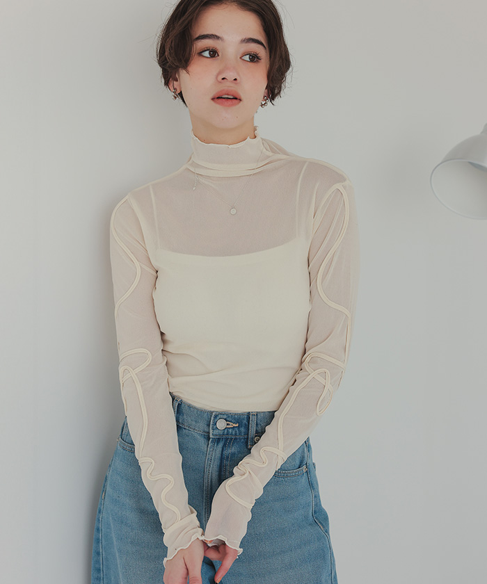 【titivate】袖コード刺繍ハイネックプルオーバー【メール便可/90】