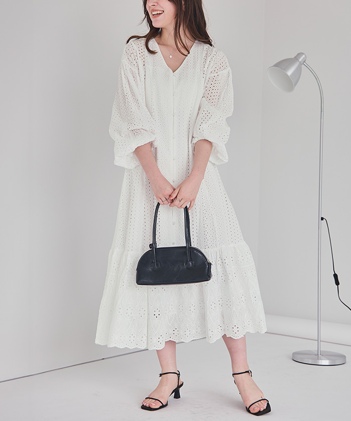 コットン刺繍レースワンピース