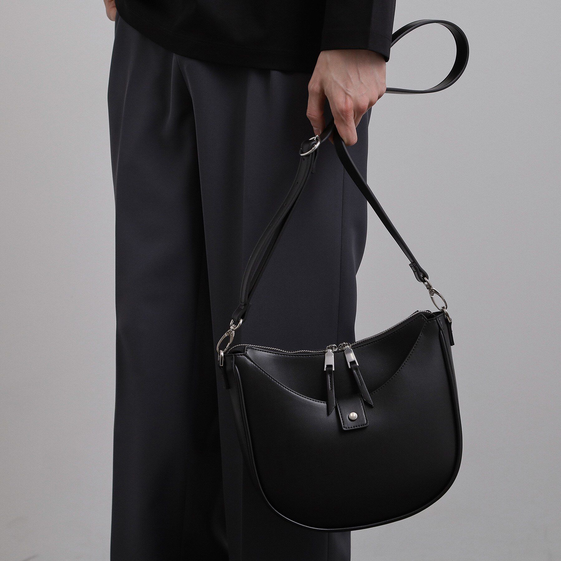 【ティーケー タケオキクチ/tk.TAKEO KIKUCHI】 アシンメトリーハーフムーンショルダーバッグ