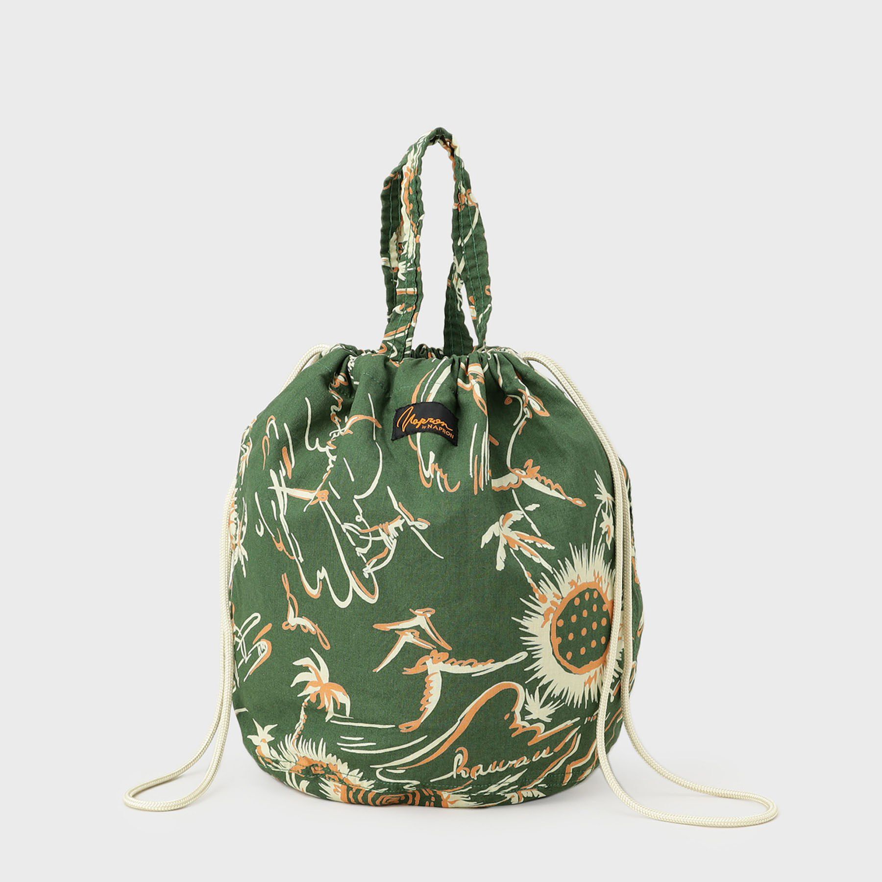 エプロンを中心としたワークウェアを展開するNAPRONのペイシェントバッグシリーズ【デザインポイント】ヴィンテージのアロハ柄からインスパイアされた夏らしい.. |