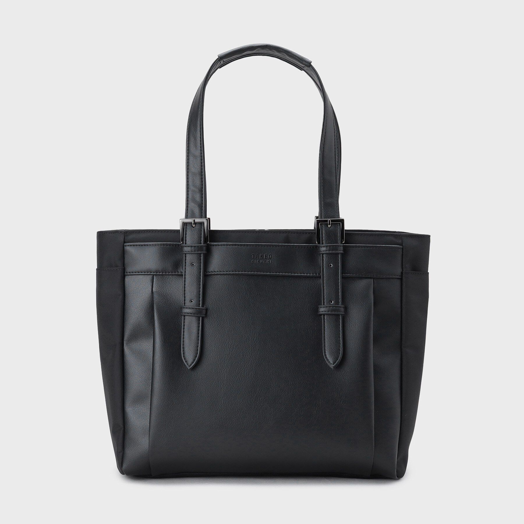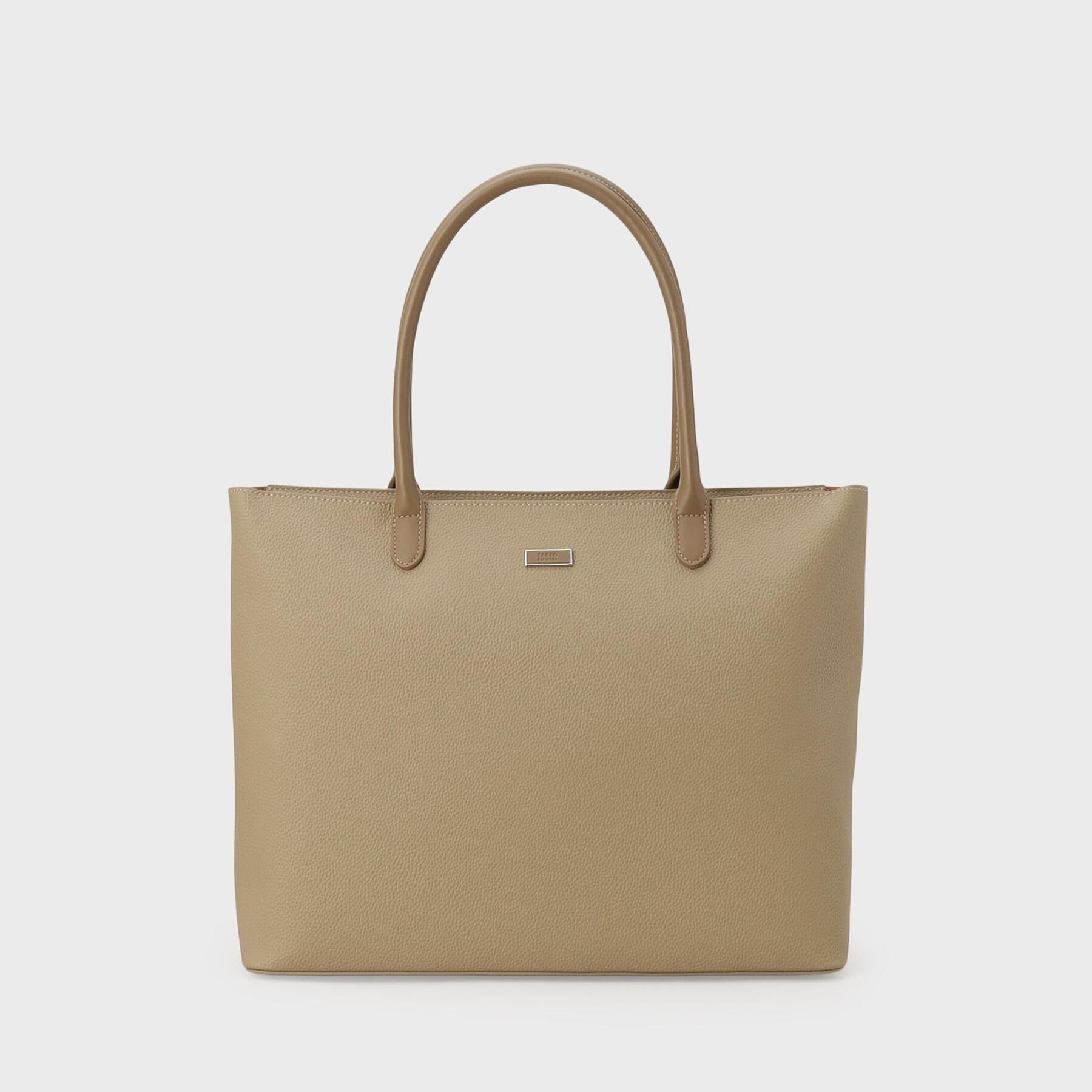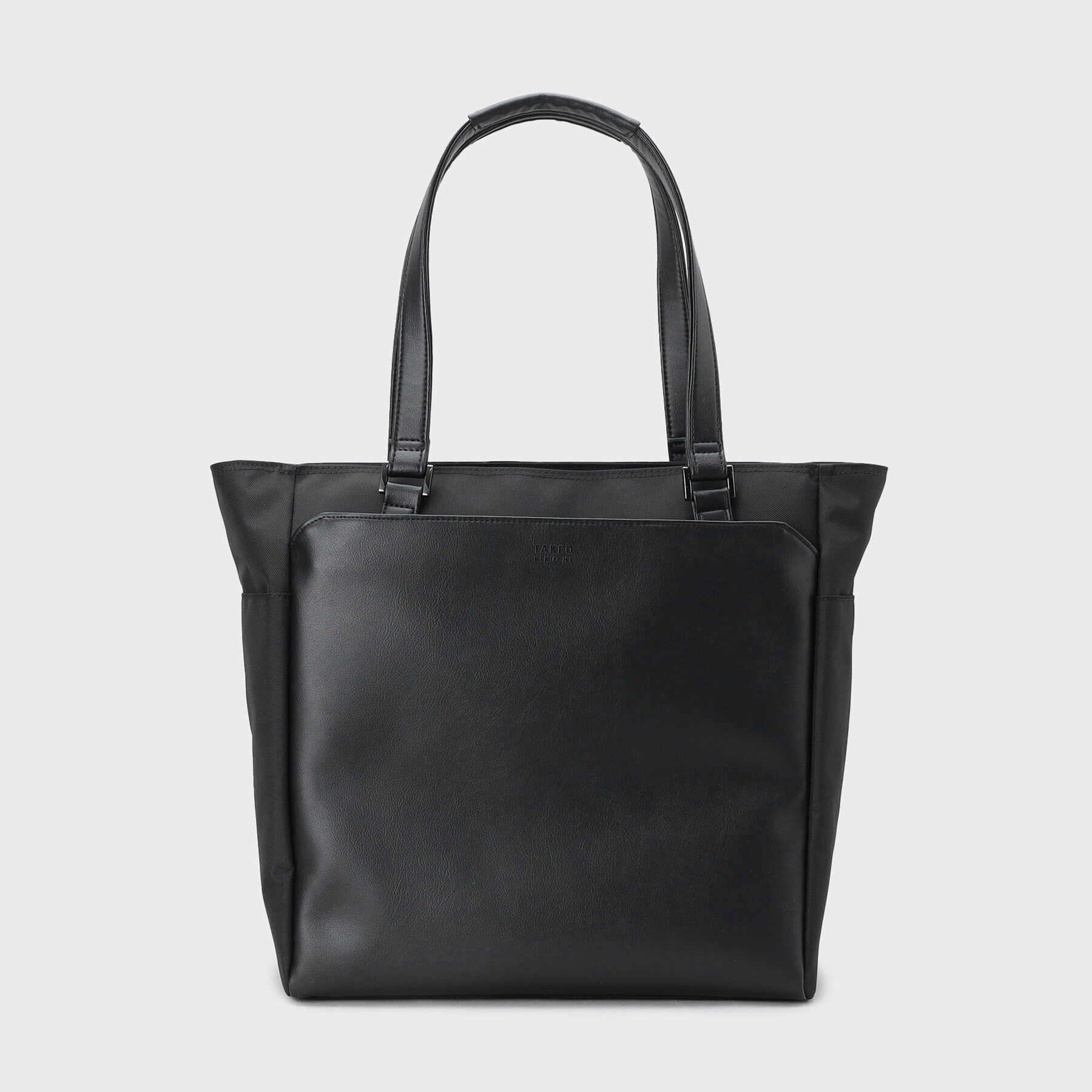 【デザインポイント】マットな見た目のマイクロファイバー(人工皮革)とポリスエードのボンディング素材を使用した、ドレッシー過ぎない雰囲気のトートバッグ.. |