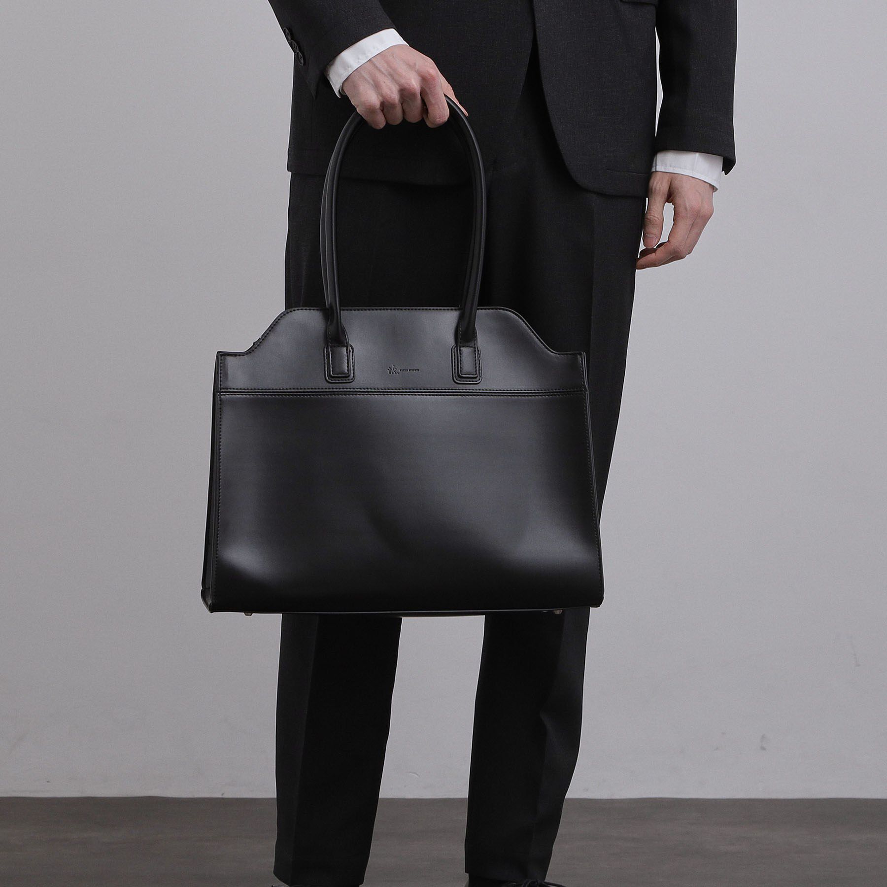 【デザイン】バッグ上部の独創的なカッティングラインが目を惹く、建築的で美しいフォルムのトートバッグ。A4ファイルやノートPCもすっきりと収まる実用的なサ.. |