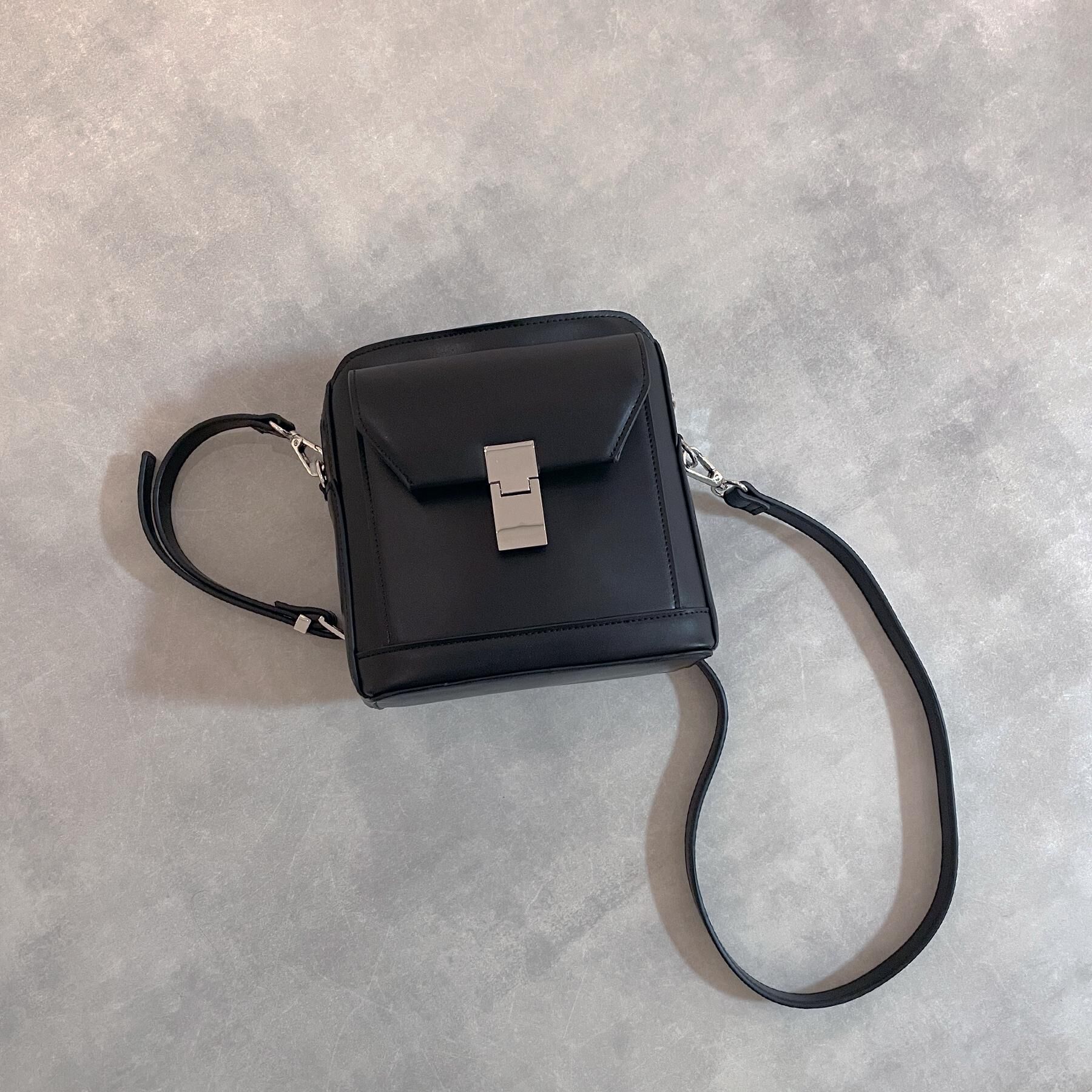 バイカラーのデザインが程よく個性をだし、差別化を図れるボックスショルダーバッグ【素材】程よく艶のあるシンセティックレザー素材を使用。上品でモードな印.. |