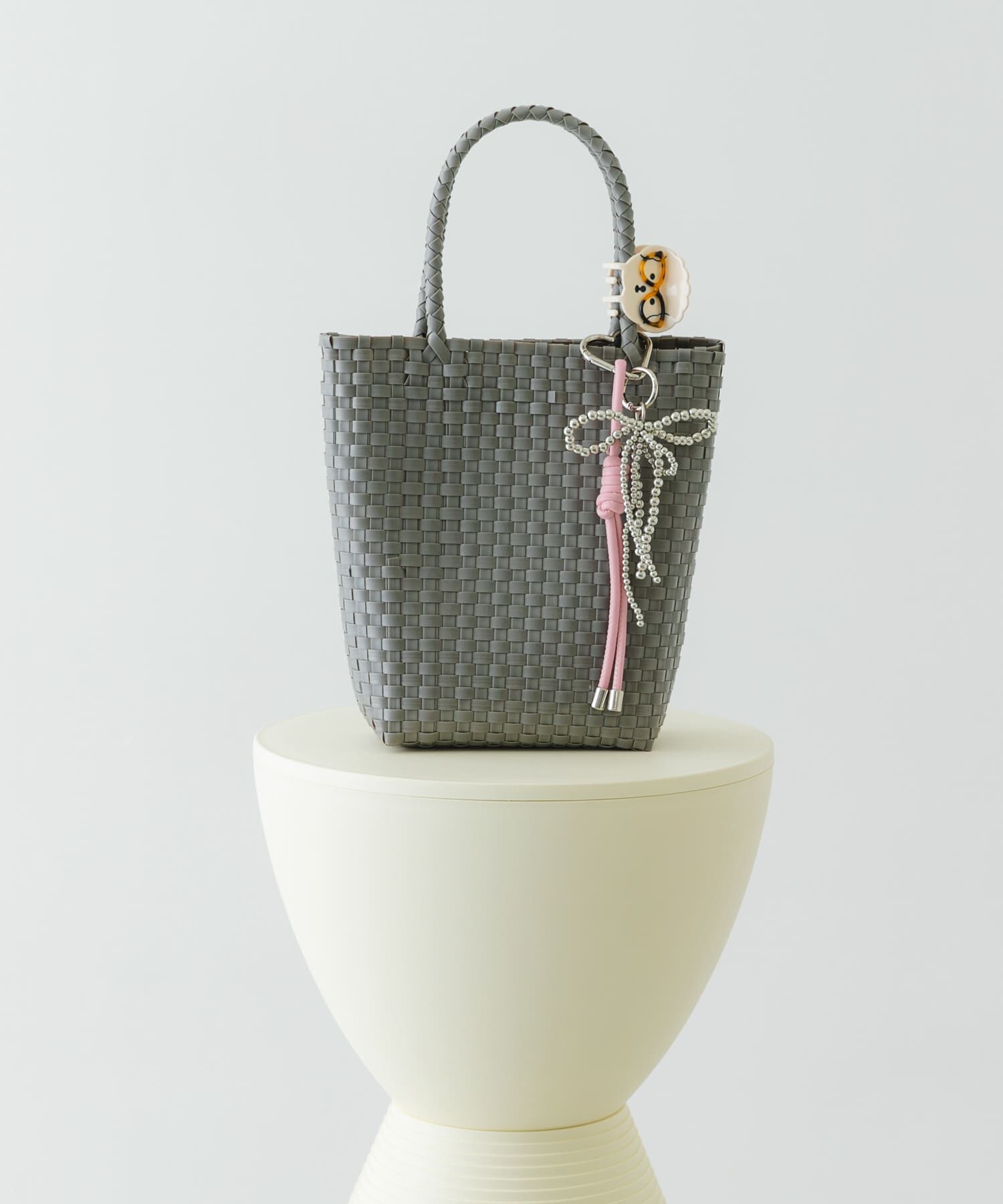 遊び心のあるチャームがアクセントのメルカドバッグ【Design】編み込まれた本体は、しっかりとした厚みがあり、日常使いやこれからのレジャーシーズンにもおす.. |