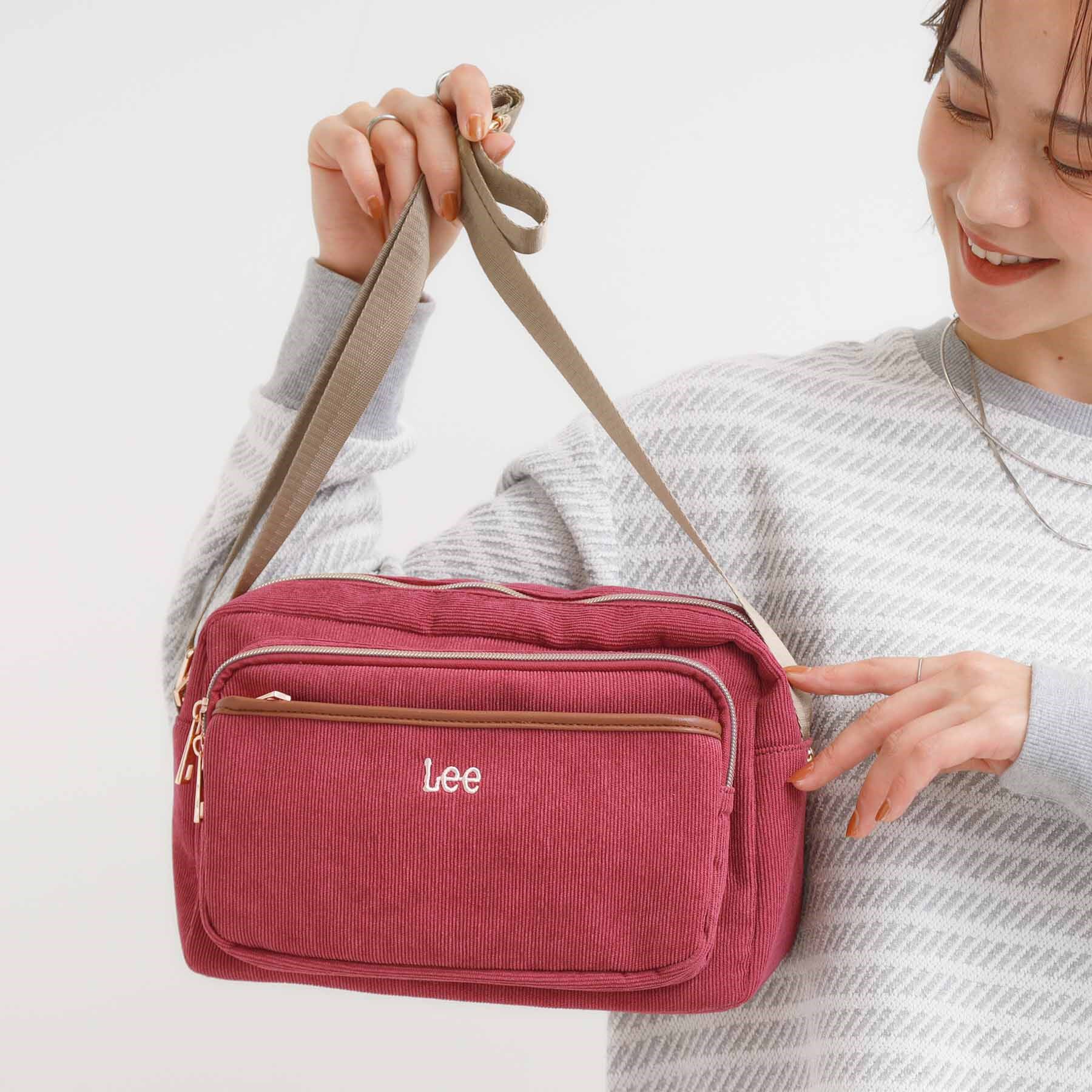【デザイン】Lee別注のショルダーバッグです。秋冬らしくコーデュロイ素材を使用しました。メイン収納部分には、600mlのペットボトルが横向きで入ります。フロ.. |