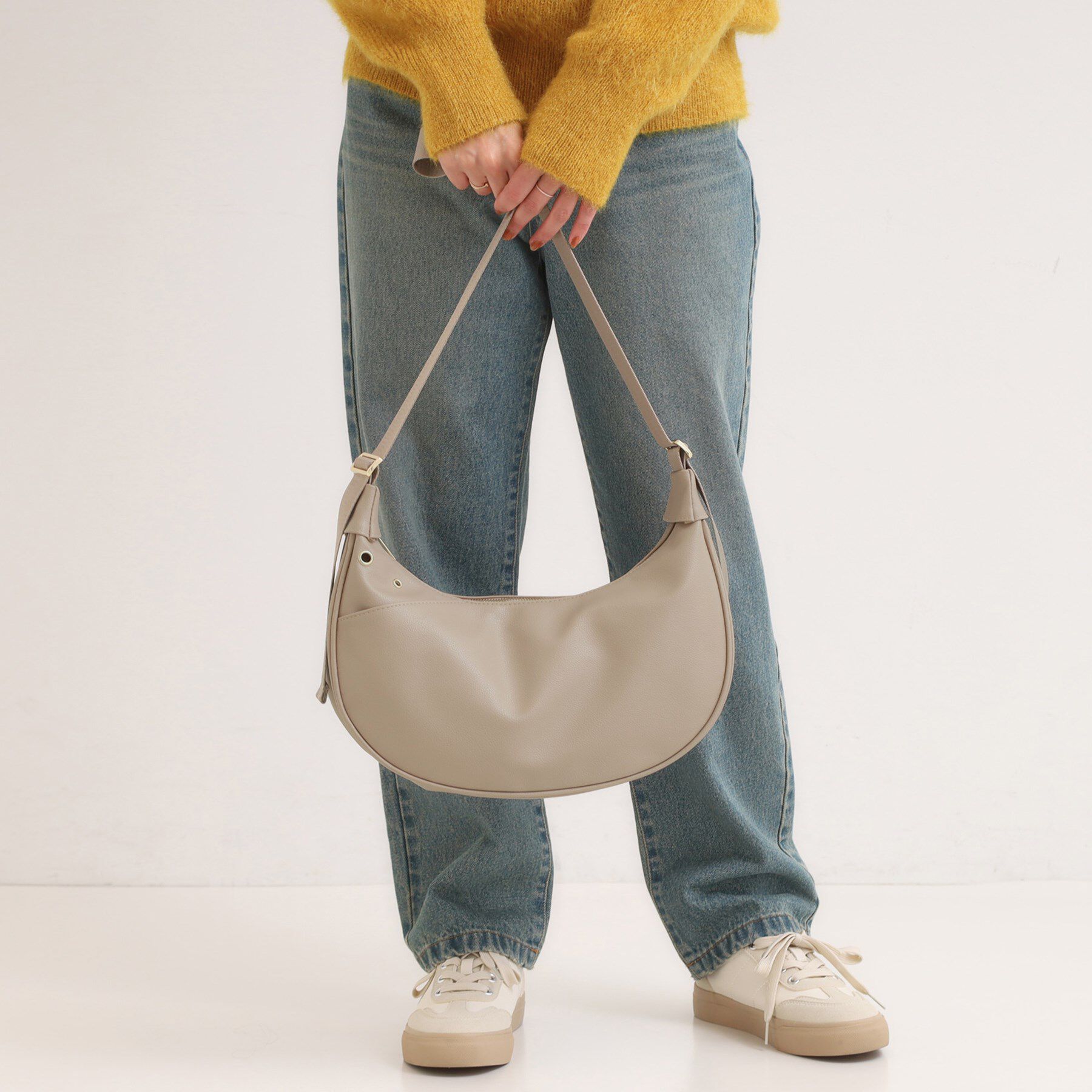 【シューラルー/SHOO・LA・RUE】 ハトメ使いがアクセント ハーフムーンショルダーバッグ