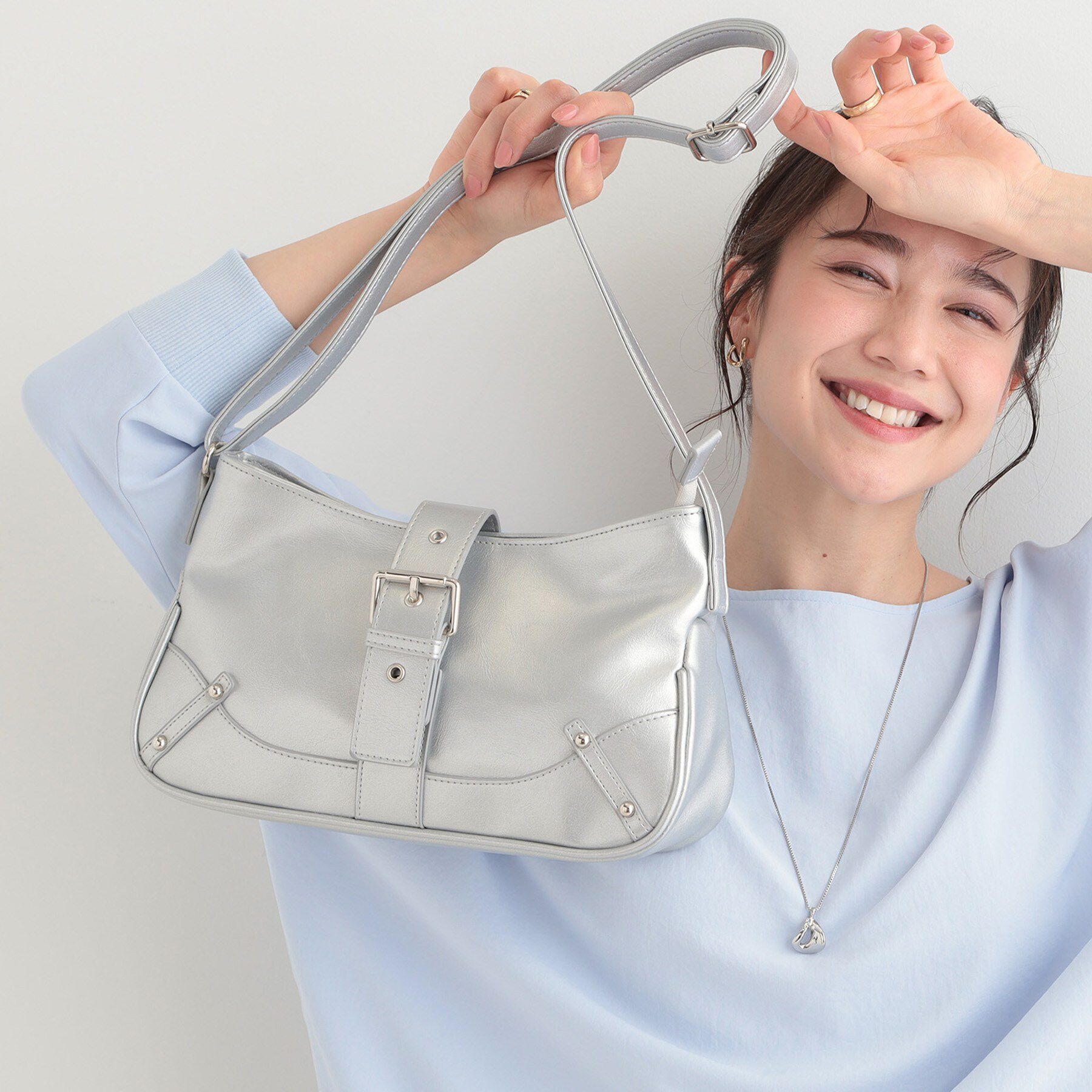 【デザイン】ベルトのデザインがポイントでトレンド感のあるショルダーバッグです。本体口元はファスナー仕様なので、荷物が見えなくて安心です。小ぶりなサイ.. |